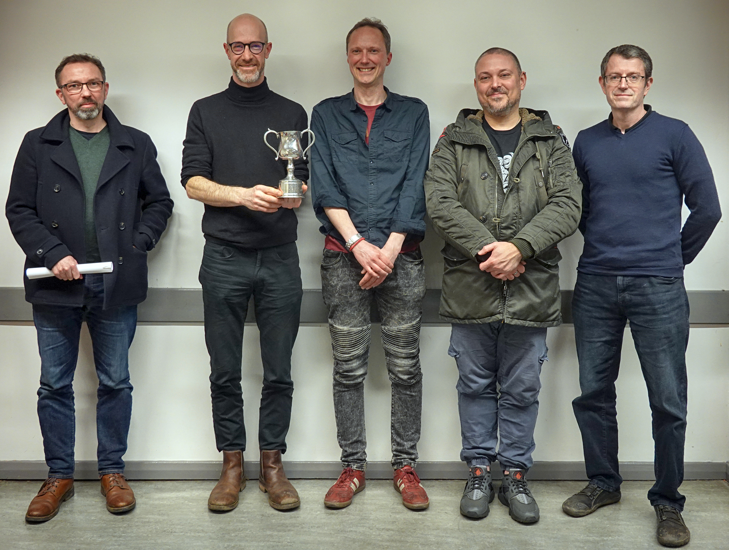 Winners from left to right: Andrew Lambeth (Highly Commended), Linda Fulton (Second), Ian Harker (Third plus the Annavation award) and Peter Richardson (First).